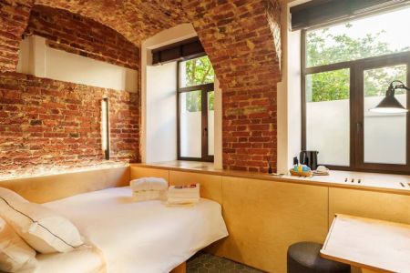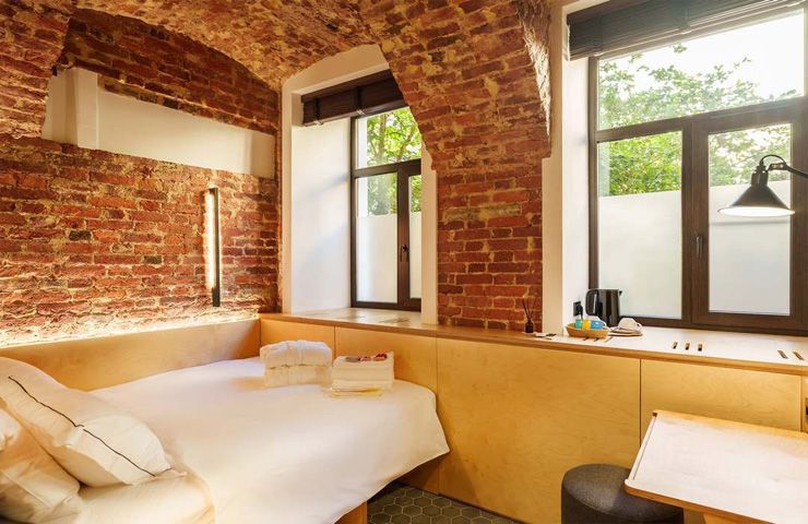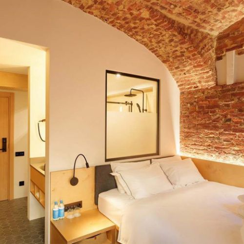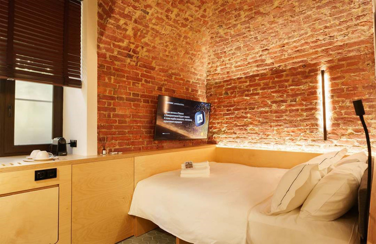 Концепция смарт-отеля основана на приватности и современных технологиях. Доступна дистанционная регистрация по коду, который придет в сообщении. Помещения оснащены голосовым управлением техникой посредством умной колонки. Жилой фонд включает уютные номера со светлыми интерьерами и аутентичной кирпичной кладкой. На всей территории доступен высокоскоростной Wi-Fi.